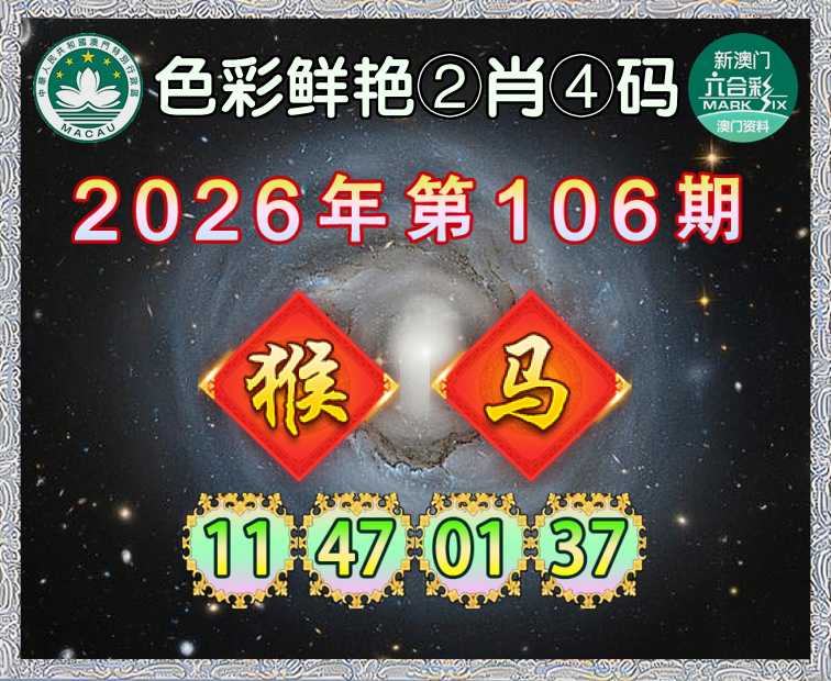 106期:『色彩鲜艳』 ②肖④码【猴马】【11.47.01.37】开:鸡22错