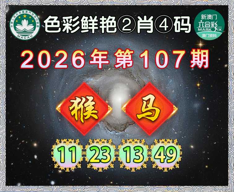 107期:『色彩鲜艳』 ②肖④码【猴马】【11.23.13.49】开:马49准